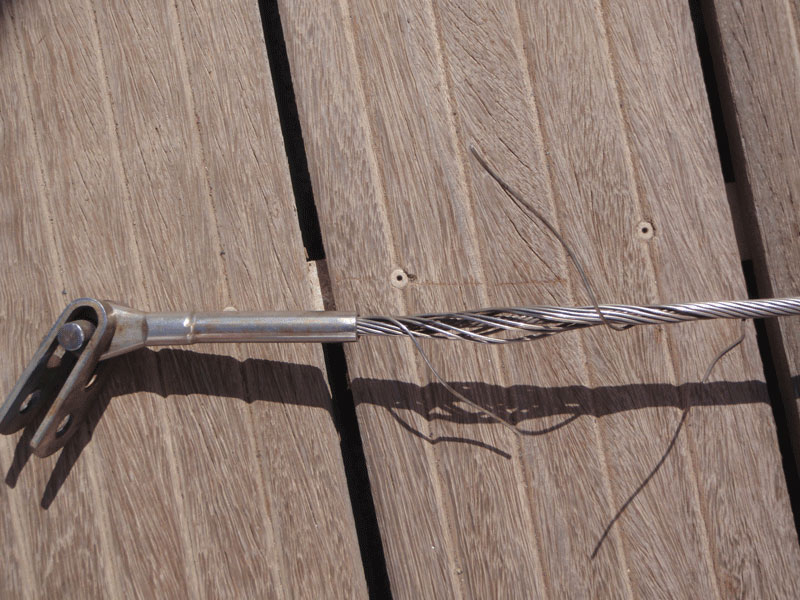 When we got back I went over to refill the gas bottle, I saw this van with all this advertisement about rigging, electronics, fitting and stuff. I asked the guy if he could help me with the rigging. I was using the uphaul as a halyard for the genoa and that worked out very well. However, I can’t use the originally halyard as a uphaul for the spinnaker pole.
