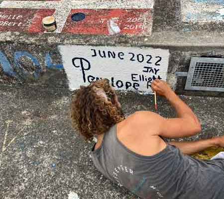 We left Horta Monday around 5pm. In the morning we did a basic painting on the quay for a safe trip. Elliott got some leftover paint and a brush. It’s not the most artistic painting but it’s there. Hopefully it’ll last at least as long as my True Companion painting I did 10 years ago.